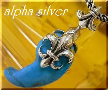 - シルバー925銀の天然石 勾玉ターコイズ 百合紋リバーシブル ペンダント