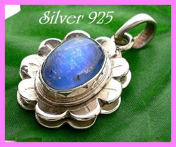- シルバー925銀の天然石ムーンストーン[ブルー]花型ペンダント