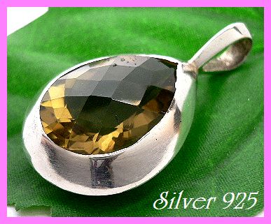 - シルバー925銀の天然石レモンクォーツ[多面カット]ジュエリー ペンダント