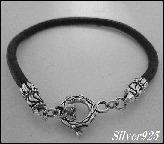 - シルバー925銀パーツ付 牛革 丸硬紐レザー ブレス/silverアクセALL50%OFF