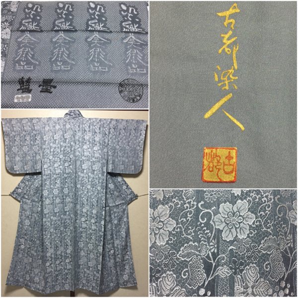 > 新品御仕立品 首里琉染 巨匠 山岡古都 黒墨 染織美術品 究極なお召着 端末有り 764番