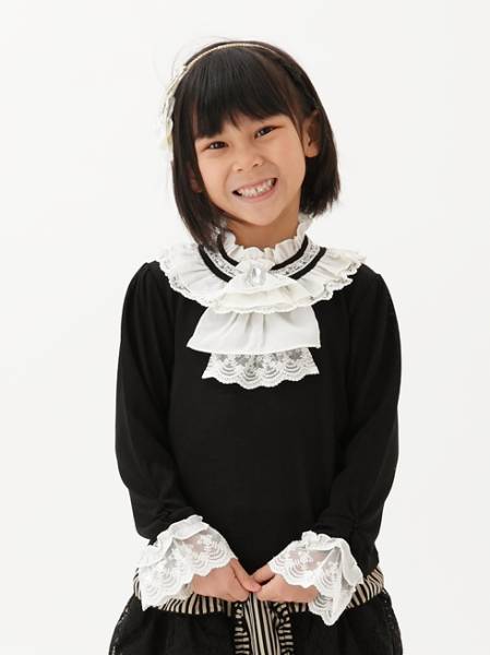 > 345◇ジャボ付クラシックプルオーバー 130cm 黒 ブラック axes femme kids アクシーズ ファム キッズ TO33X04KO 長袖