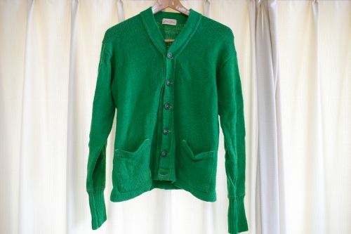 - ビンテージ カーディガン 緑 グリーン 長リブ