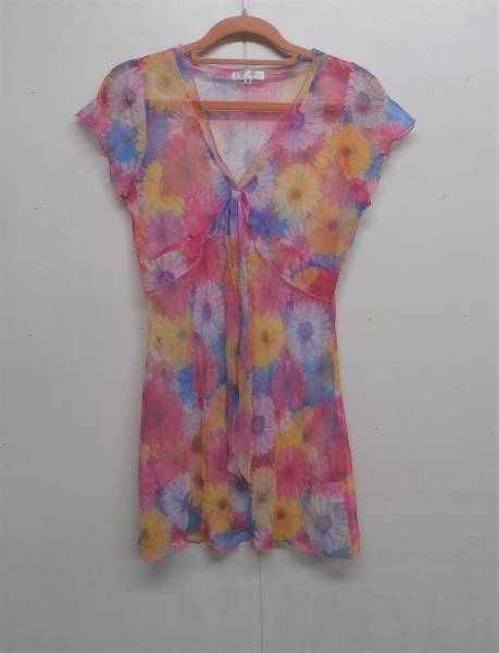 - 13568 ◆ Winfame可愛いカラフル フラワーデザインシースルートップス サイズM
