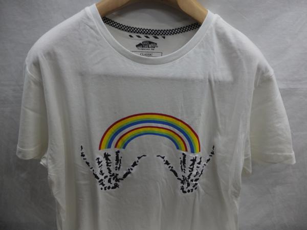 - ★送料無料!半袖Tシャツ レインボープリント 薄手天竺 Lサイズ 白3 米国VANS★OUTLET未使用格安!