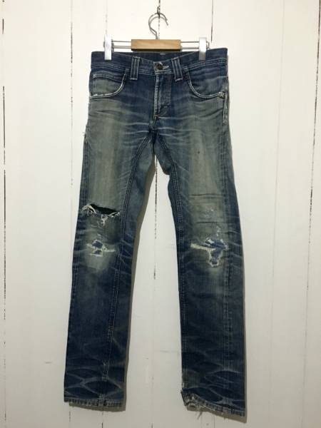 - 鬼ヒゲ☆LEE 36611 S 約W32 デニムパンツ 膝ダメージ リペア ストレート 雰囲気抜群 ジーンズ