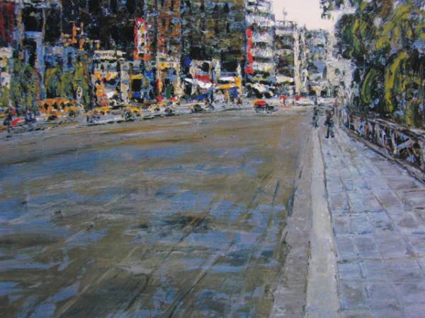 - 飯田 福治、上野公園風景、希少画集画、高級新品額・額装付、状態良好、送料無料