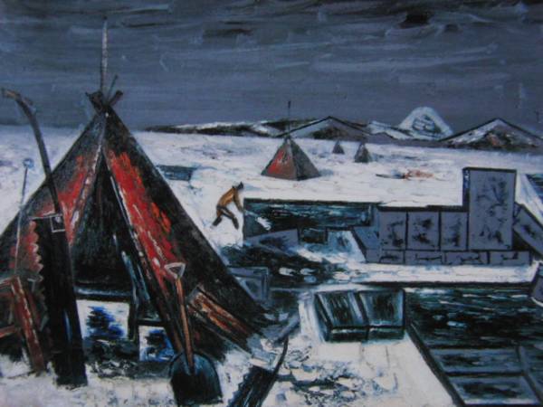 - 居串 佳一、採氷風景、希少画集画、高級新品額・額装付、状態良好、送料無料