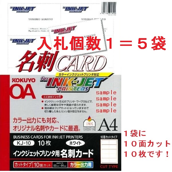 - 即決送料込 送料無料 KJ-10 KOKUYO コクヨ インクジェット 名刺カード 5袋