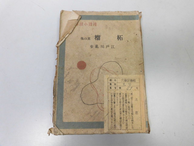 > ●P302●柘榴●其の他●推理小説叢書●江戸川乱歩●雄鶏社S21●石榴白画夢双生児火星の運河心理試験蟲●図書館廃棄本●即決