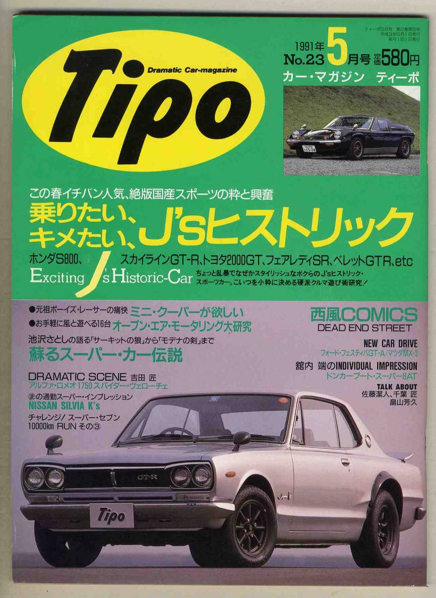 書名/記事: 91.5 ティーポTipo/J'sヒストリック - ホンダS800、スカイラインGt-R、トヨタ2000GT、フェアレディSR、ベレットGTR...、ミニクーパー、蘇るスーパーカー伝説、…