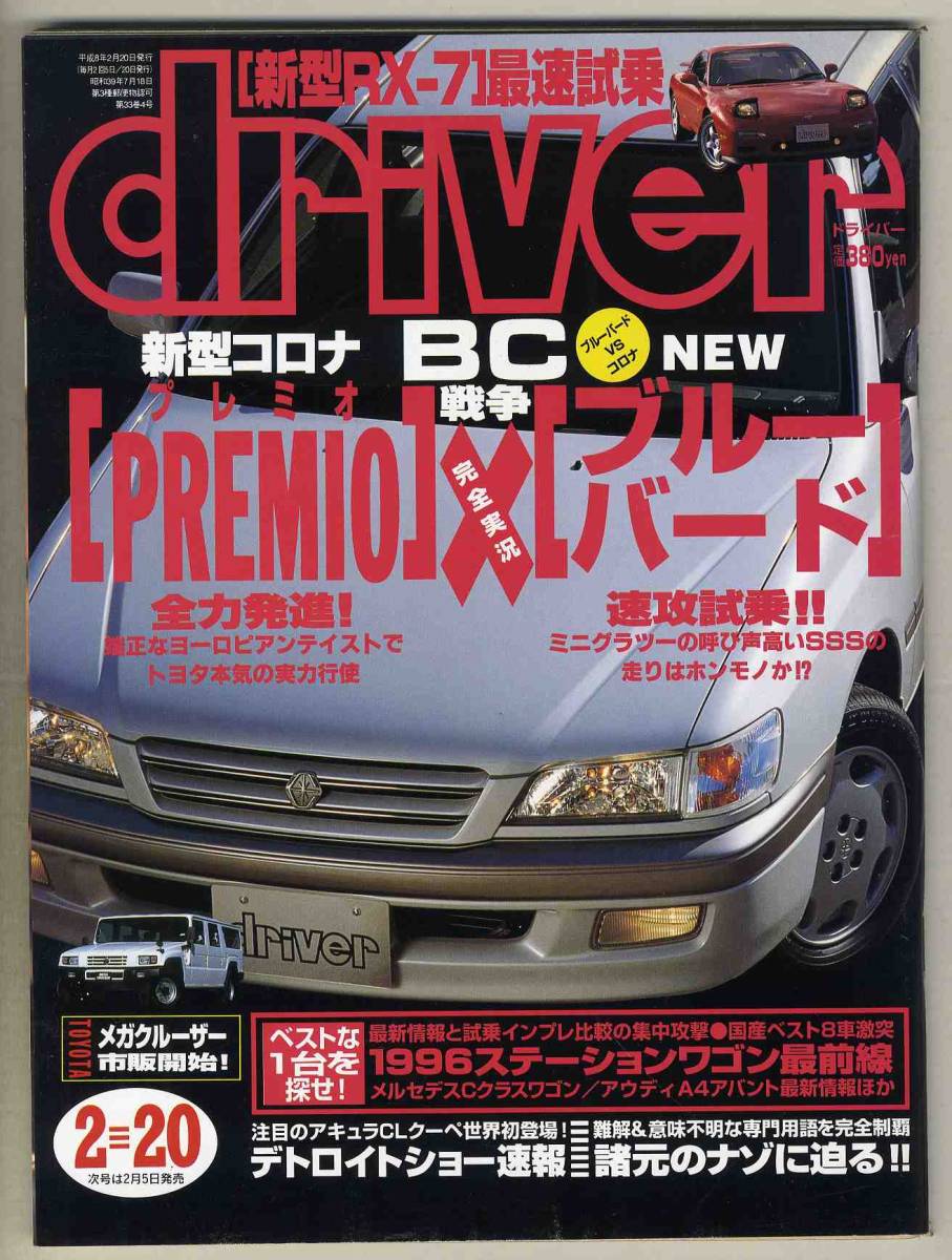 書名/記事: 96.2.20 ドライバー/アンフィニRX-7、メルセデスベンツ96モデル、トヨタメガクルーザー、トヨタコロナプレミオ、シボレーカマロクーペ、…