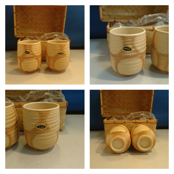 - ◎信楽焼◎組湯呑◎鳳山◎未使用◎竹ケース付き◎G/203