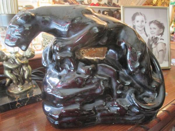 - 希少!50's 岩登り黒ジャガー アメリカヴィンテージ TVランプUSA製Antiqueパンサー/ アンティーク家具ロカビリーミッドセンチュリーハワイ