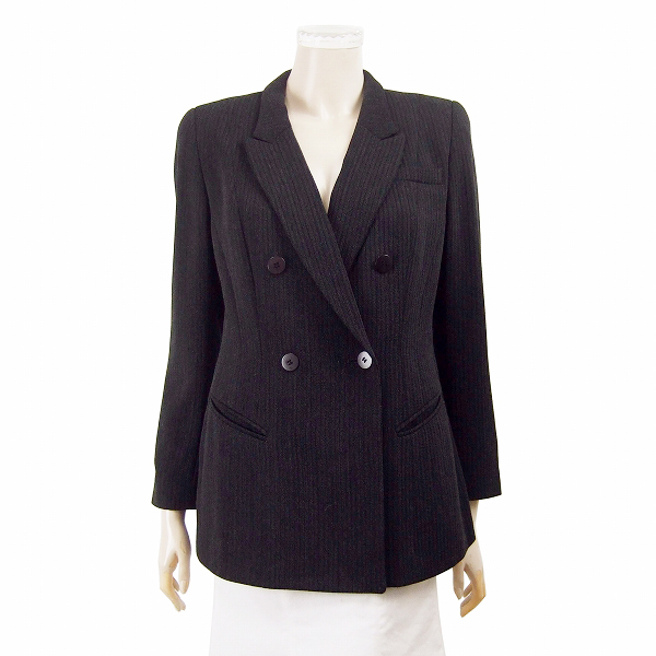 > 美品★ビルダジュール*Ville d’azur*ワールド*濃グレー系*ストライプ織地ウール*美形ゆったりジャケット*40(Lサイズ.11号)