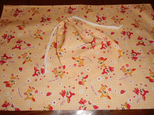 > No.138 大判裏付ランチョンマット&巾着 ハンドメイド 40x60 バンビ柄 女の子