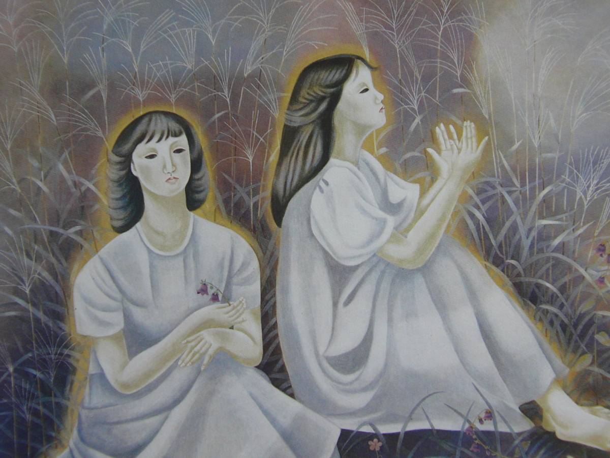 - 三谷十糸子、【月の出を待つ】、希少画集・画版画、高級新品額・額装付、状態美麗、日本画家、送料込み