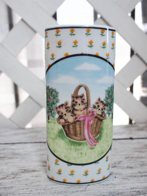 - ビンテージ雑貨*輸出用陶器ネコちゃん小花柄一輪挿し*B☆インテリアディスプレイ飾り