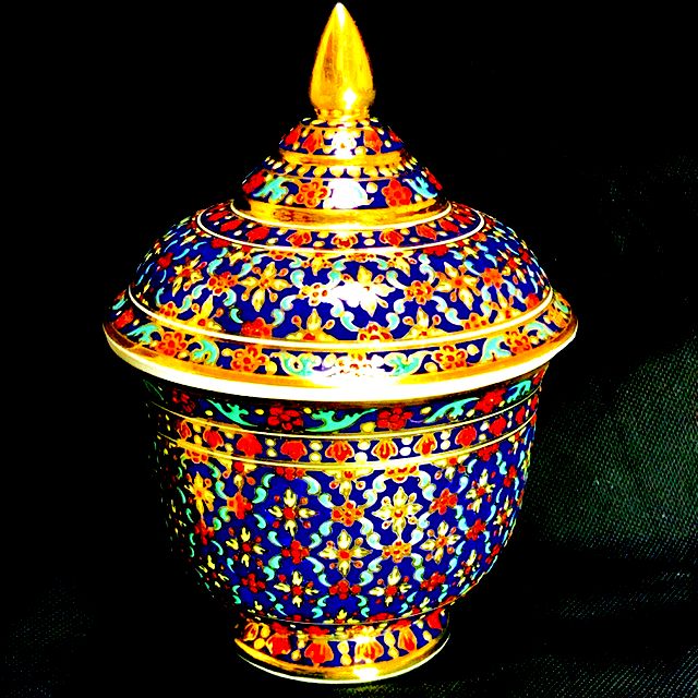 - 大!高さ15.5㎝タイ王室御用達手書き ベンジャロン焼小物入れ *検 ウェッジウッド