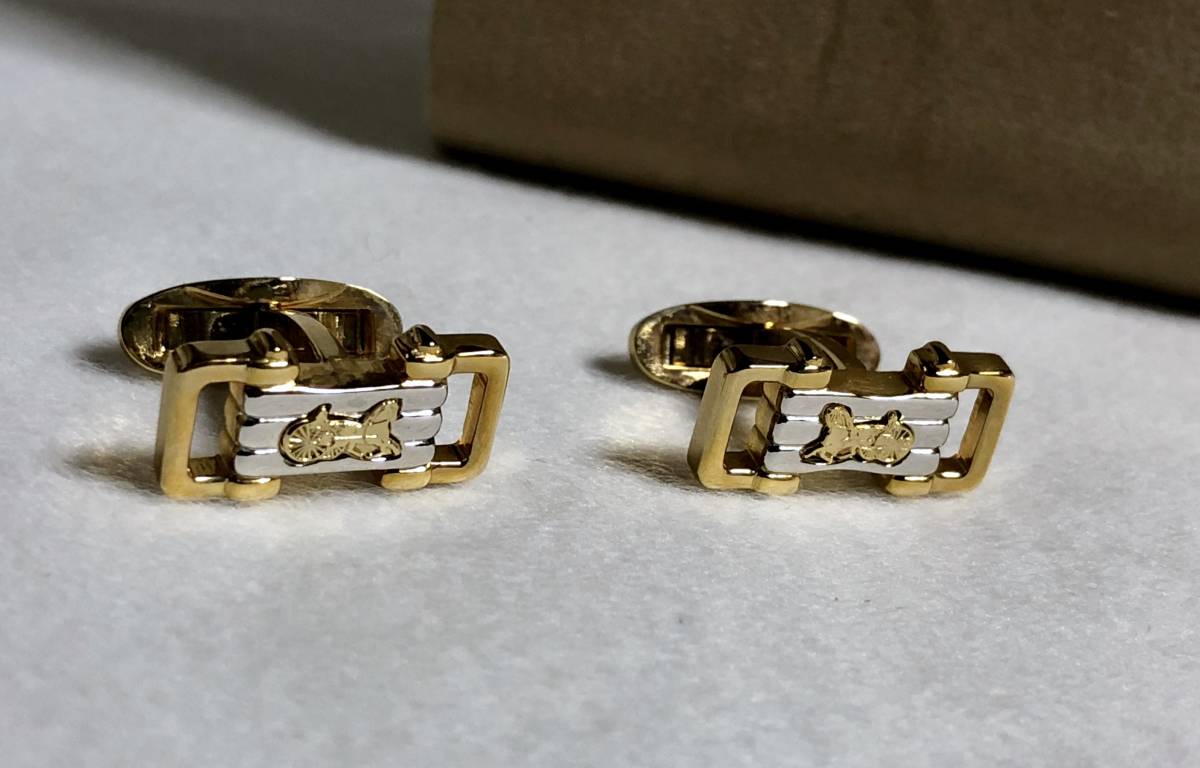 - 正規良品 激レア CELINEセリーヌ ヴィンテージ 馬車モチーフ立体カフス ゴールド×シルバー カフリンクス メインエンブレムボタン ケース有