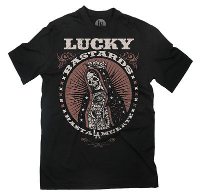 - 51 LUCKY BASTARDS ラッキーバスターズ M 黒 ブラック スカル 骸骨 TATTOO サーフボード 西海岸 アメ車 パンク ロック バンド