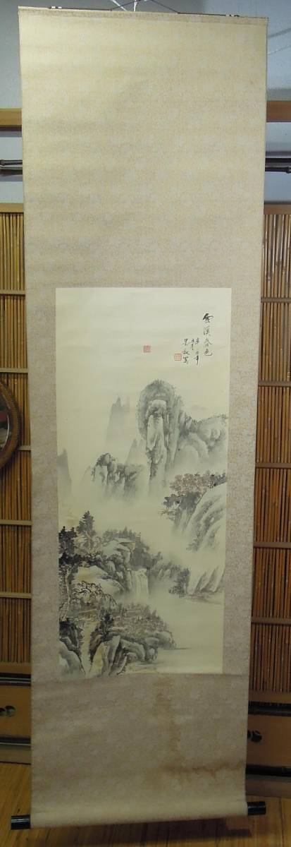 - ●《 雲渓春色図 景叔筆 掛け軸 》 中国 唐物 中国美術 山水 落款二点 絹本 共箱つき! 水墨画