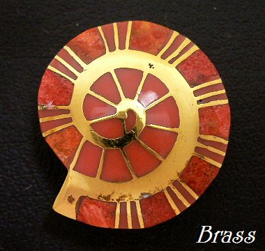 - 真鍮製アンモナイト型コーラル珊瑚ブラス コンチョ/インレイ技法