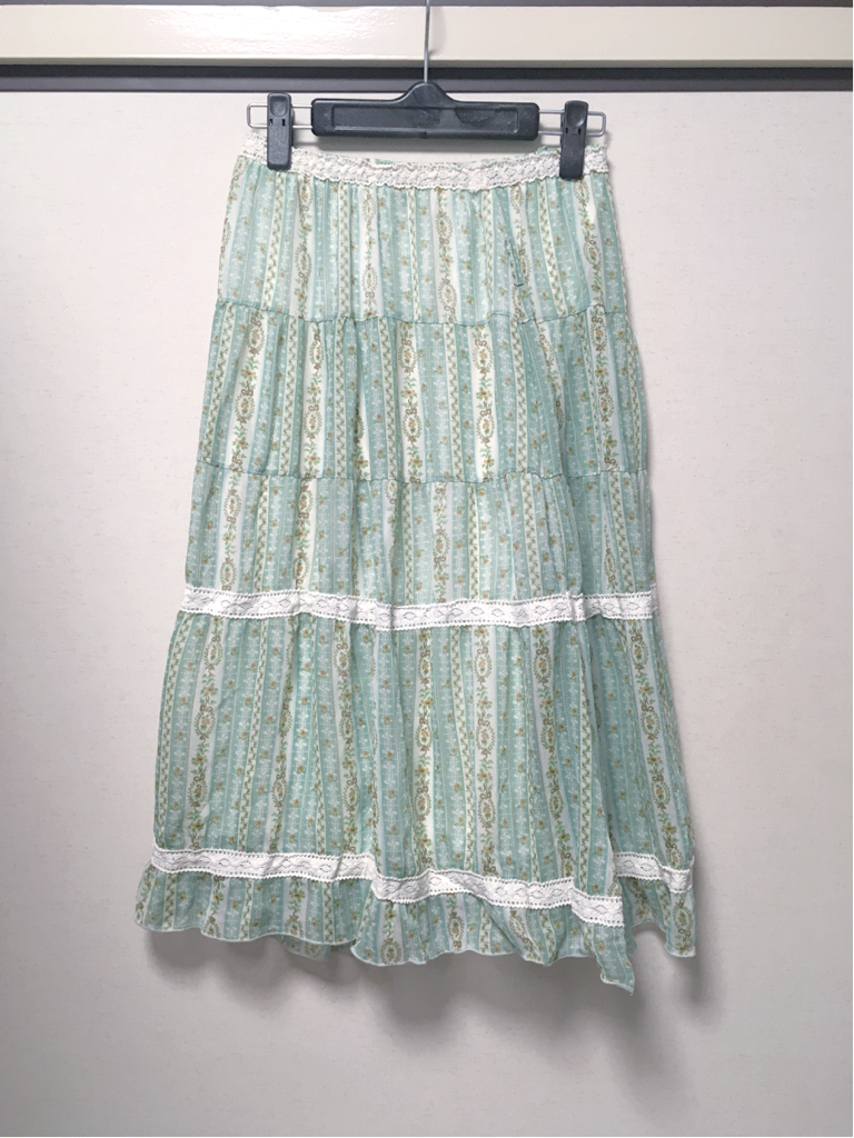 - 新品 ミントグリーン 花柄 シフォンスカート