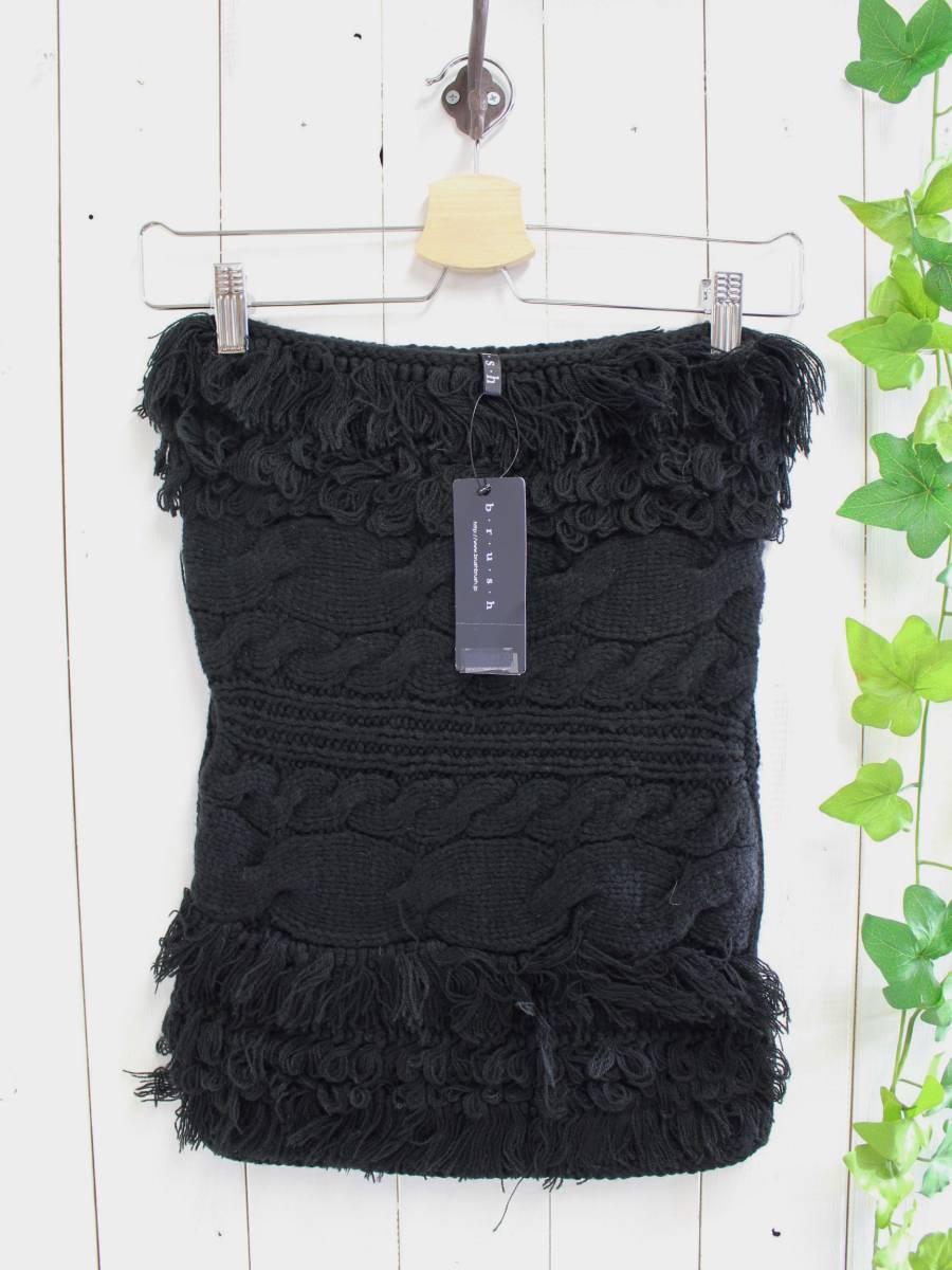 - 新品*b・r・u・s・h ブラッシュ brush*フリンジ ケーブルニット ベアトップ(36)ブラック/定価5,900円