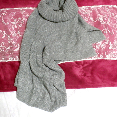 > 灰色グレーちょっと変わった形のセーターニット風ポンチョケープ Gray little unusual shape sweater knit style poncho cape