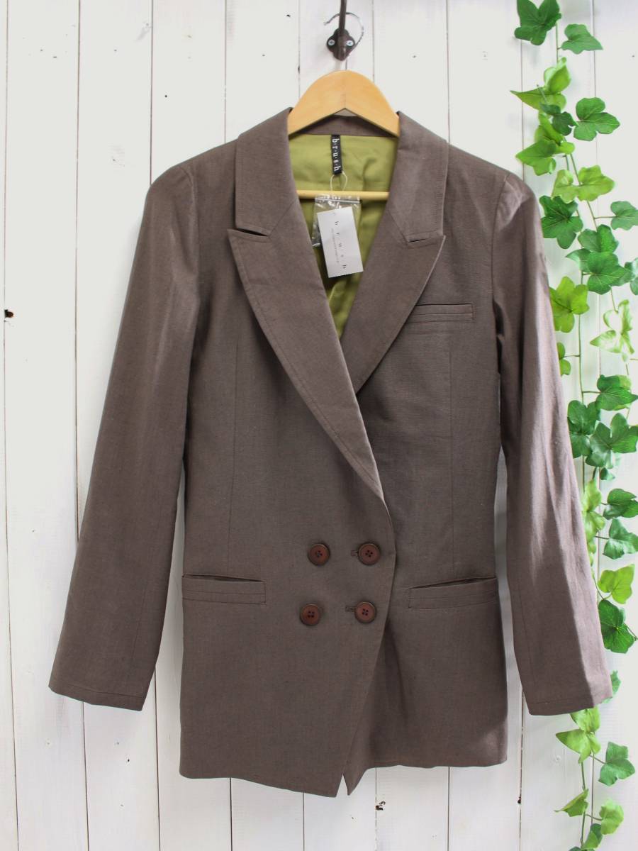 - 新品*b・r・u・s・h ブラッシュ brush*綿麻コットンリネン ダブルテーラードジャケット(36)モカ/定価16,800円