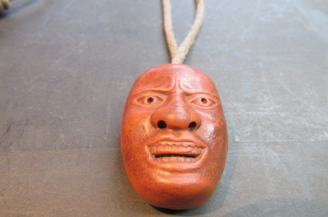 - 常滑焼 石仙 朱泥 面根付 「怒女」ペンダント
