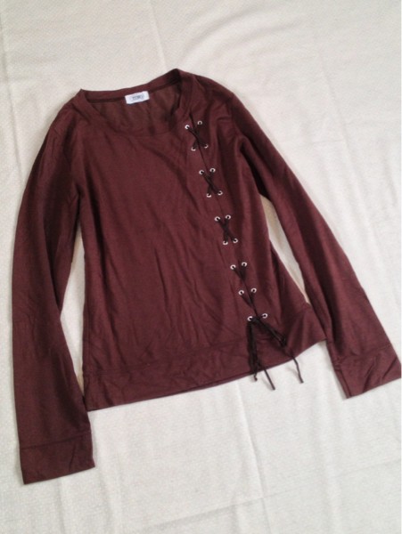 - *TINO・編み紐が可愛い茶色長袖カットソー*