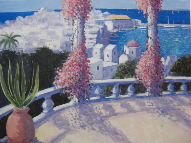 - 藤祥州、春のミコノス、希少な額装用画集より、新品高級額装付、状態良好、送料無料