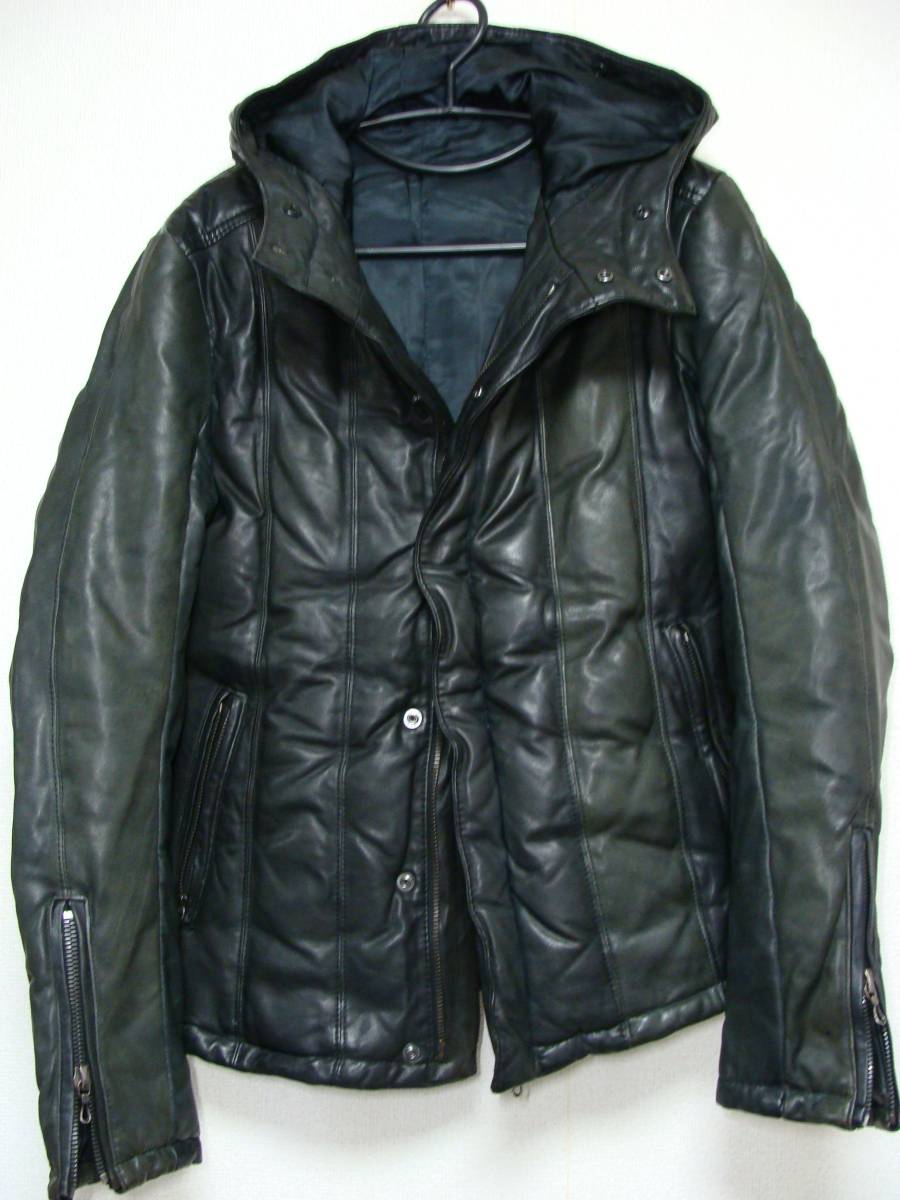 > SHELLAC シェラック ◇ オール レザー 本革 ラム シープ スキン 中綿 フェザー フード ダウン ライダース パーカー ◇ リアル 皮 革 ファー