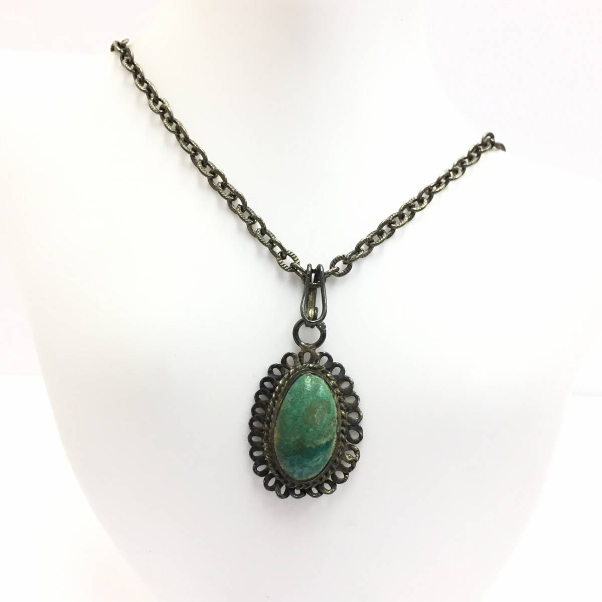 - 【ネックレス】約78cm マラカイトのような雰囲気 アンティーク いぶし グリーン シンプル ペンダント