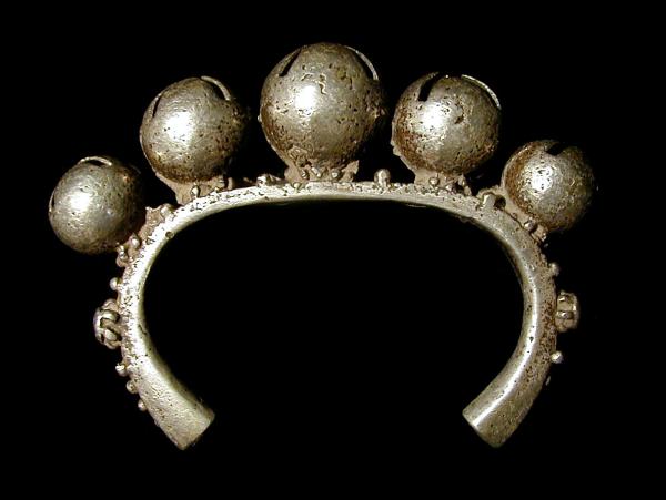 - インドネシア・西ティモールの銀製骨董ブレスレット(5個の鈴)