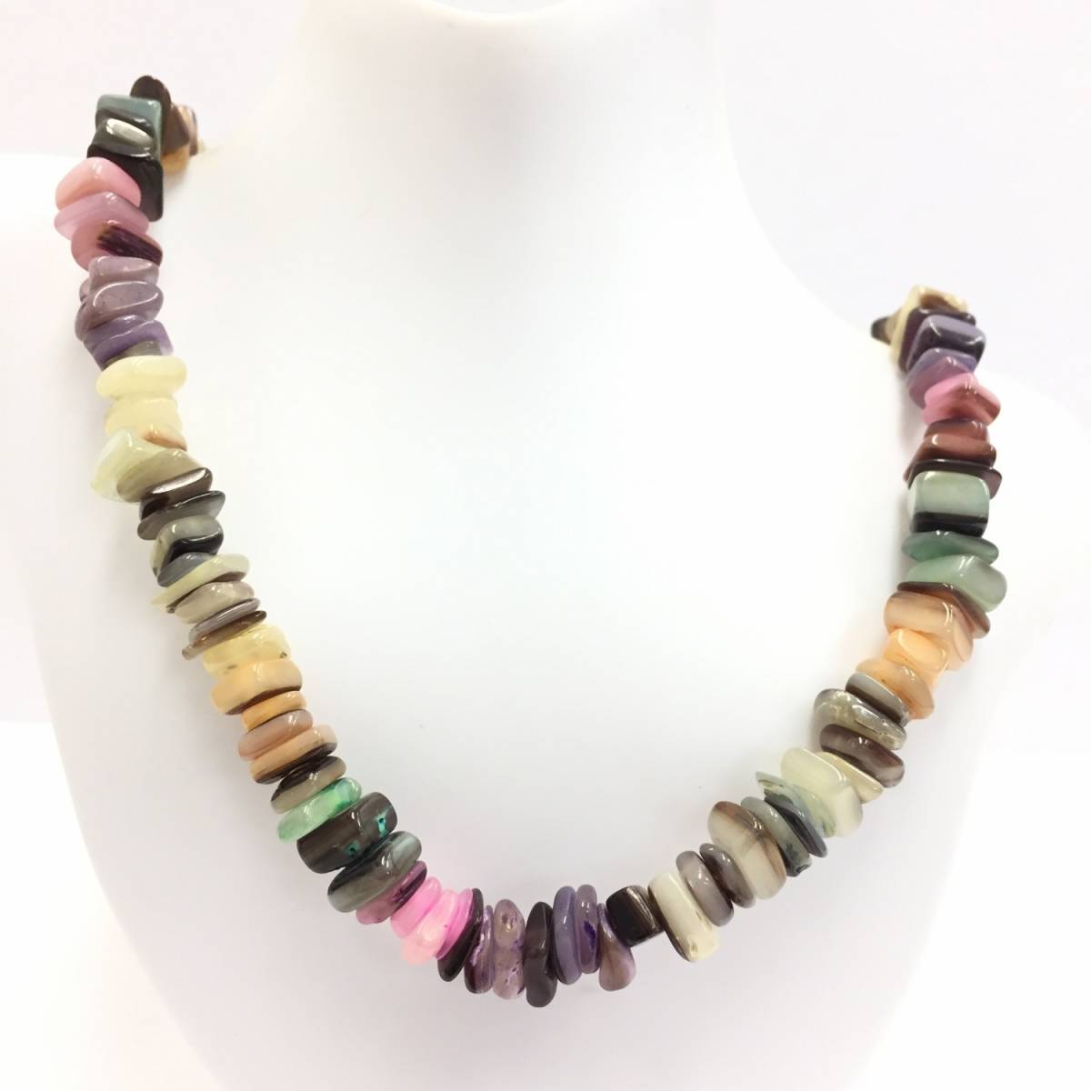 - 【ネックレス】約48cm 色とりどりのストーンが織りなす1連 パワーが沢山詰まっていそう シック モダン 上品