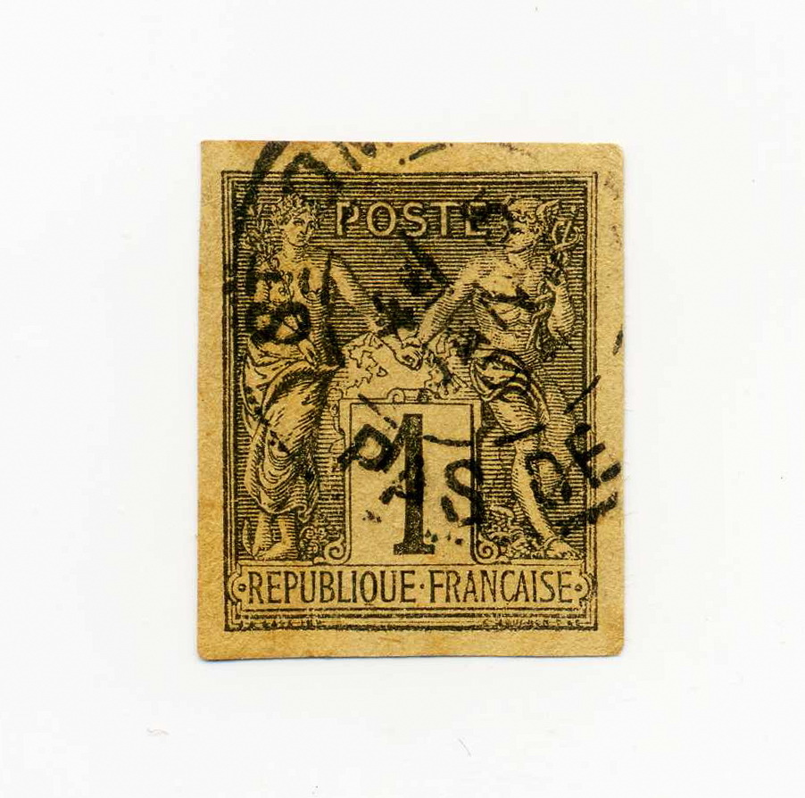 - フランス 1877年◆ 平和と通商 無目打ち imperf 1c ◆Scott# 86b 済 1種 ◆送料無料◆zh-147