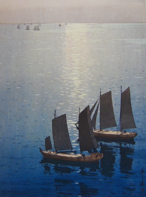 - 吉田博、【光る海 瀬戸内】、希少画集画、高級新品額・額装付、状態美麗、送料無料
