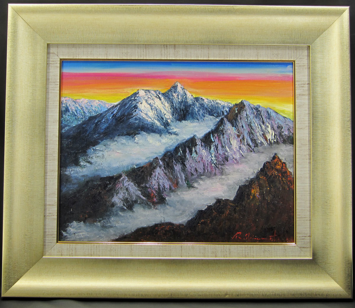 - 島本 良平 「槍ヶ岳」 油彩 真作保証 新品 額装 F6号
