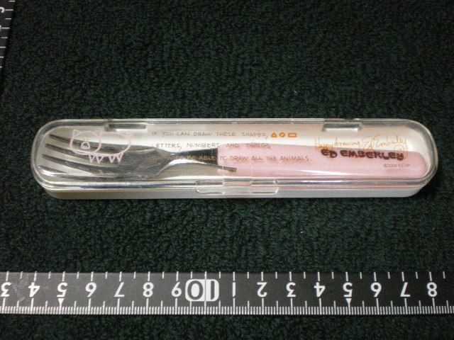 - 珍品フリマ] フォーク入れ フォークケース フォーク付き 使用感少なし プラスチック製 日本製 全長14.8cm [送料無料]