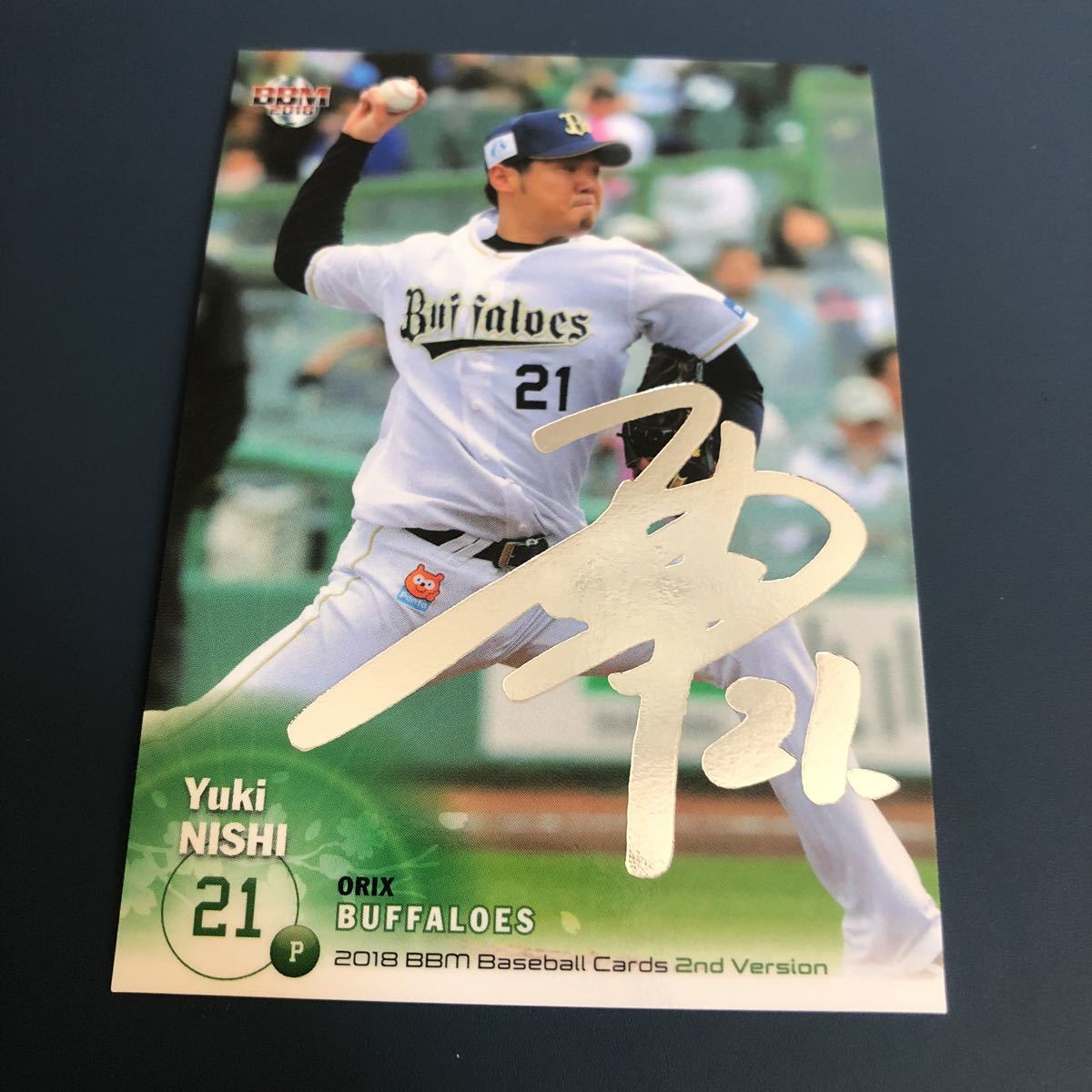 - 即決 2018BBM2nd 銀箔サイン オリックス21西勇輝