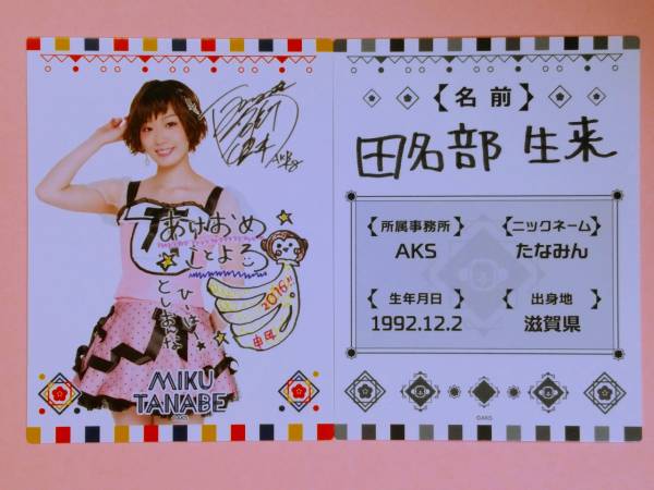 > AKB48 福袋2016 プロフィールカード 田名部生来 2枚セット
