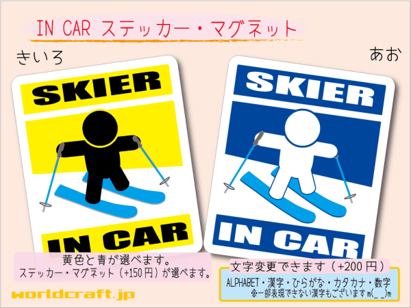- ■_ IN CARステッカースキー バージョン 1枚販売 typeA■SKIER が乗ってます スキーヤー マグネット・ステッカー選択可能☆ 磁石 ot(1