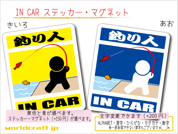> ■_ IN CARステッカー釣り人 フィッシング 釣りシール 1枚 色・マグネット選択可■車に乗ってます おもしろ 耐水シール☆_ot