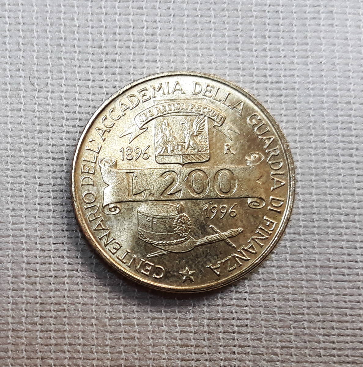 - イタリア 共和国 1896-1996年 200リラ 24mm 帽子 剣 記念 コイン + 他 硬貨 6枚 ◆s-38