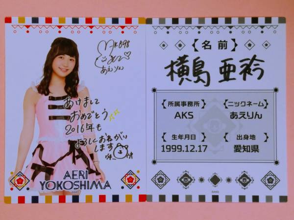 > AKB48 福袋2016 プロフィールカード 横島亜衿 2枚セット
