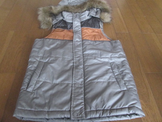 - 即決 中古美品 カーキの中綿入りパーカーベスト(130)