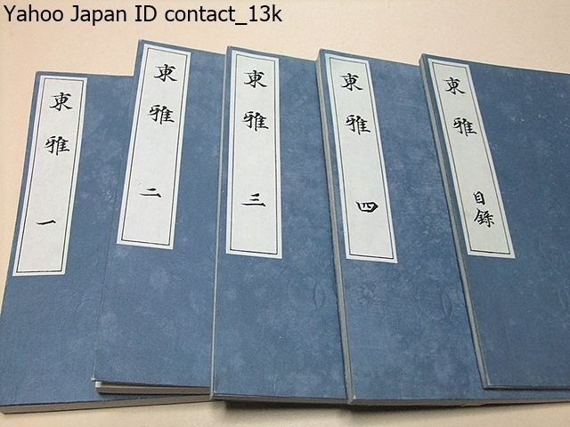 - 東雅・5冊/新井白石/非売品/明治36年/中国の爾雅にならい国語の名詞を15の部門に分け和名類聚抄にみえる物名について語義の解釈をしたもの
